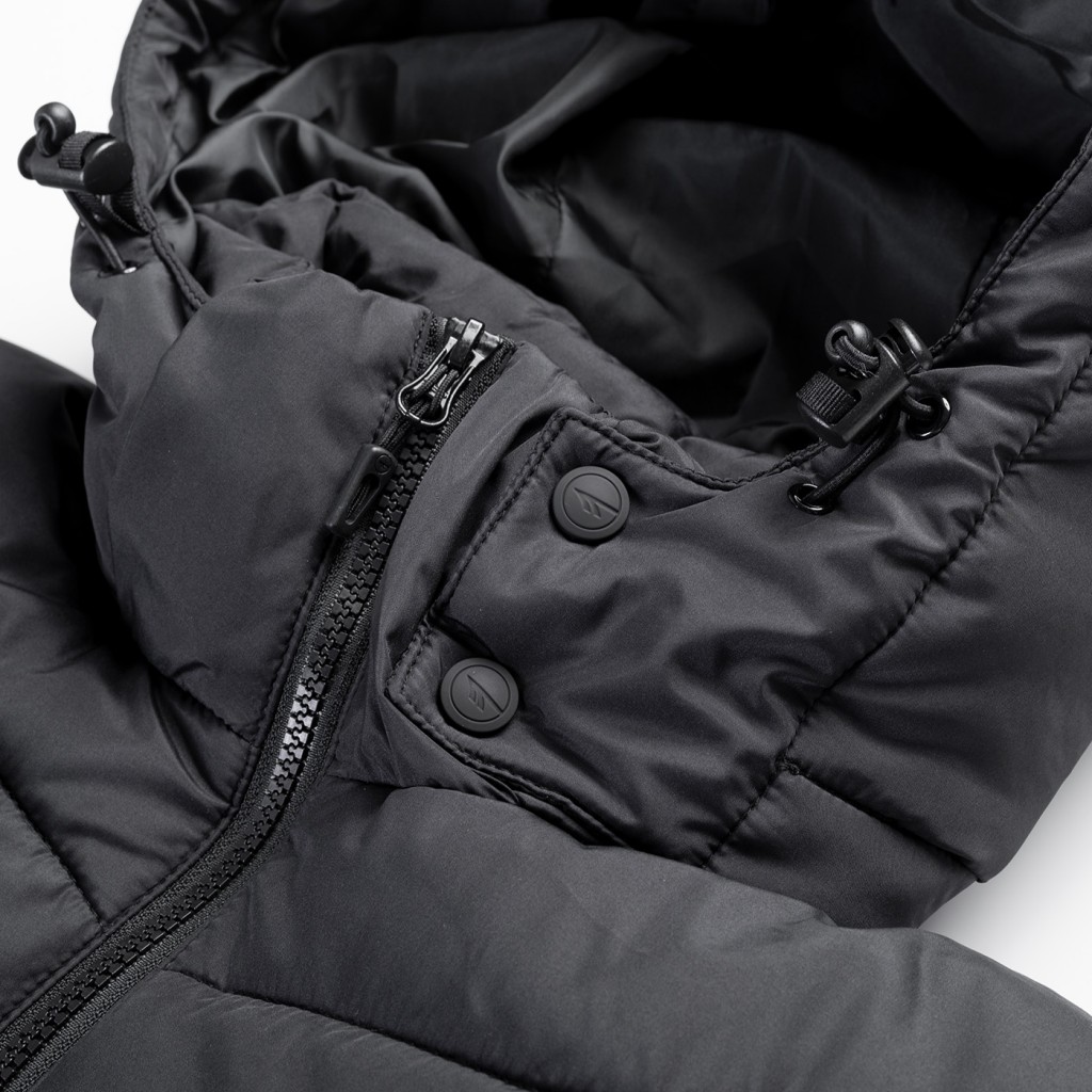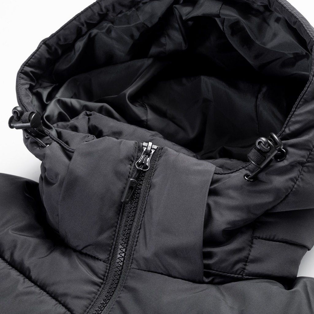 odnímatelná, nastavitelná kapuce vysoký límec dvě boční kapsy na zip reflexní prvky |