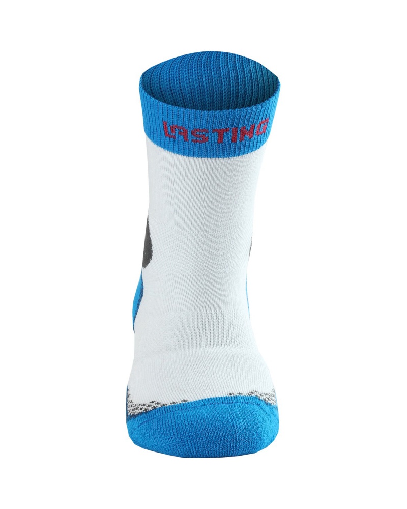 LASTING HCJ - HCJ je dětská hokejová ponožka, obsahující bavlnu a speciální polypropylenové příze s obsahem iontů stříbra, které zpomalují růst bakterií a plísní, potlačuje nepříjemné pachy a udržuje rovnováhu pokožky. Ponožka je upravena pro zlepšenou ochranu proti puchýřům a tepelnou izolaci. Ponožku od špičky k nártu a patu tvoří dvouvrstvý plyš, který zajišťuje pohodlí při bruslení a dlouhou životnost ponožky na nejvíce namáhaných částech. V nártní části a kotníku je elastická bandáž.