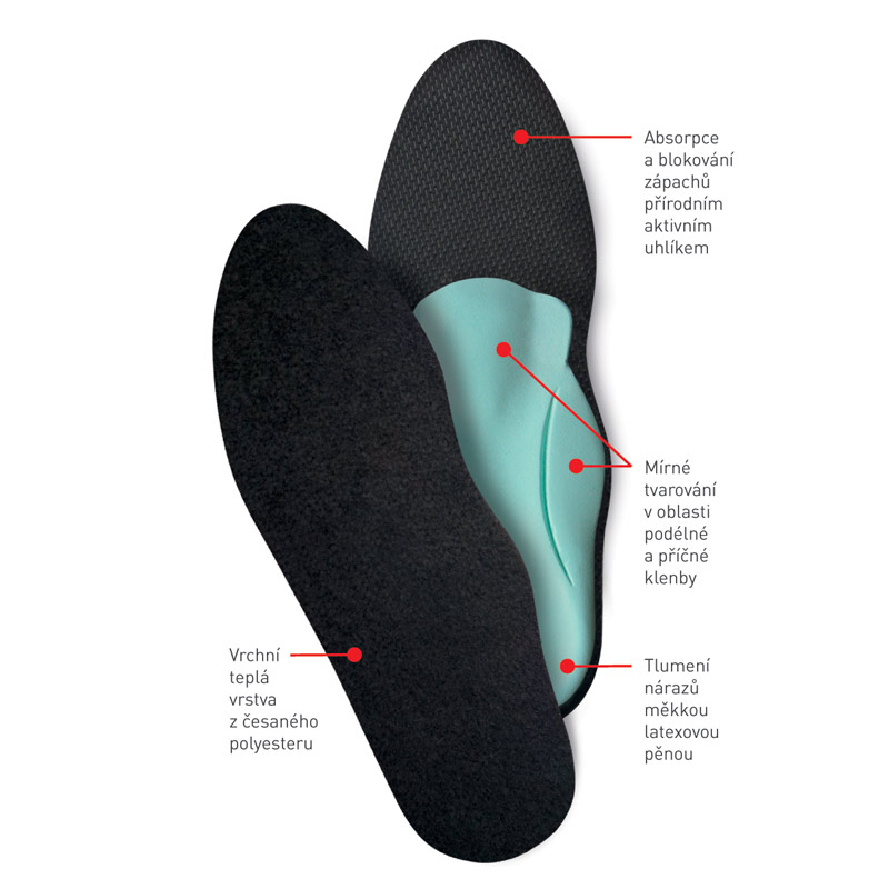 SVORTO Carbone zimní - Měkké zimní vložky s mírnou podporou podélné a příčné klenby. Dobře sají pot a potlačují tvorbu zápachu v obuvi.